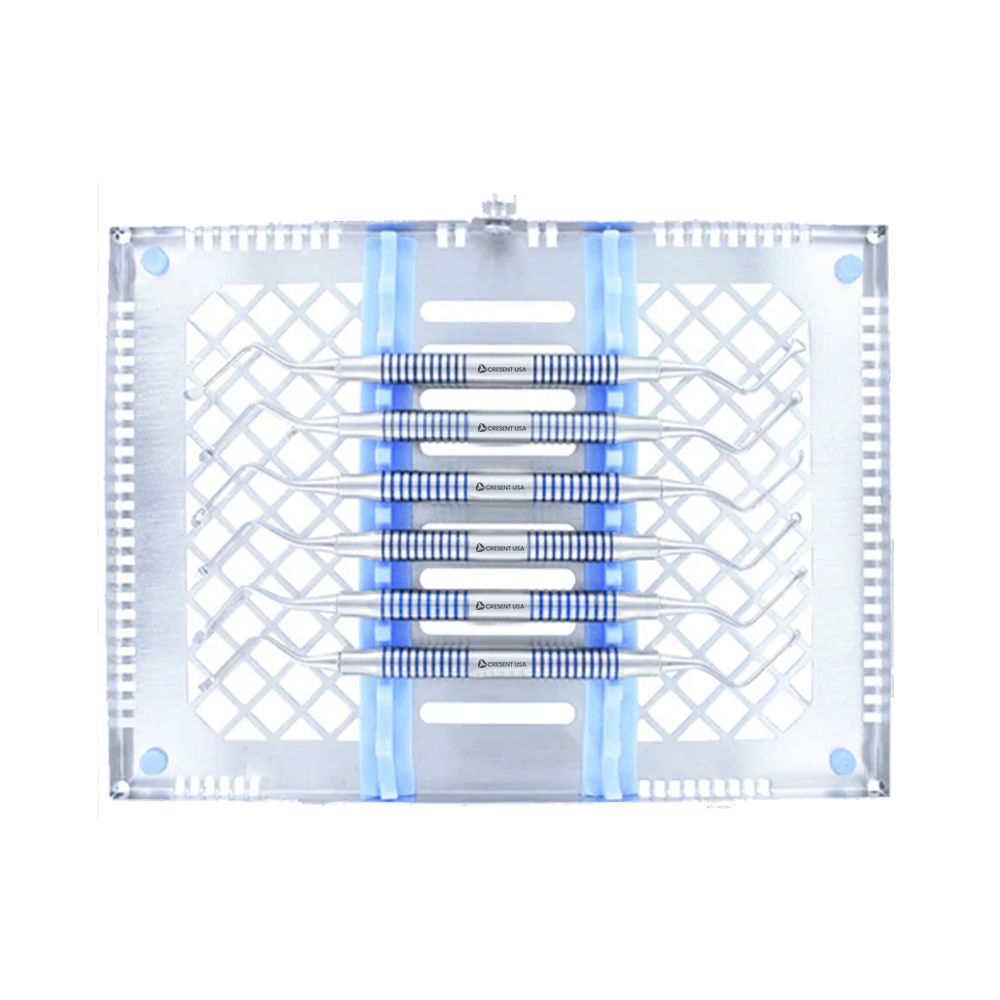 The Serrated Surgical Curette Kit includes six of Crescent Instruments Dental Products surgical curettes and one cassette. The serrated teeth are excellent for socket preservation and cleaning out granulated tissue with ease while generating healthy blood flow in just a few scrapes. Features: • Made of high-quality stainless steel • Ergonomic • Serrated edges for quicker and more efficient removal of degranulated tissue. • Excellent for socket preservation while generating healthy blood flow